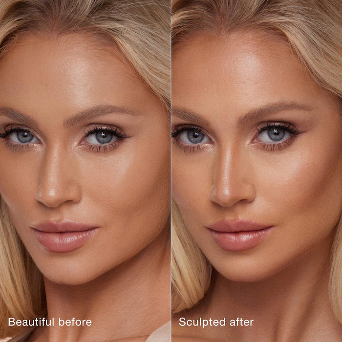 Aplíquelo directamente sobre la piel con el aplicador de almohadilla, que distribuye el producto de manera uniforme en los pómulos, la nariz, las sienes y la línea de la mandíbula. Después de aplicar, simplemente difumínalo con Hollywood Complexion Brush. El resultado es un aspecto hermoso, naturalmente esculpido.