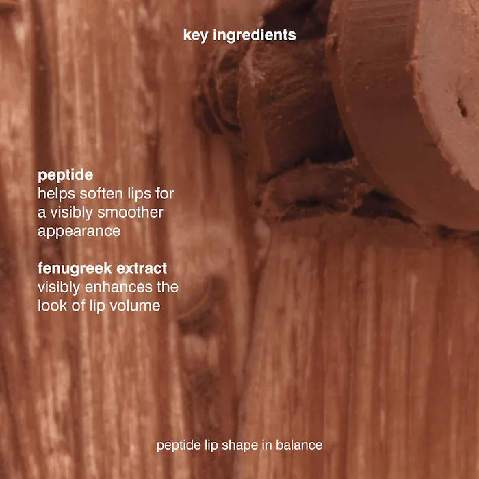 • Extracto de alholva orgánica: activo vegetal que contribuye a mejorar el volumen y firmeza de los labios con un efecto visible.